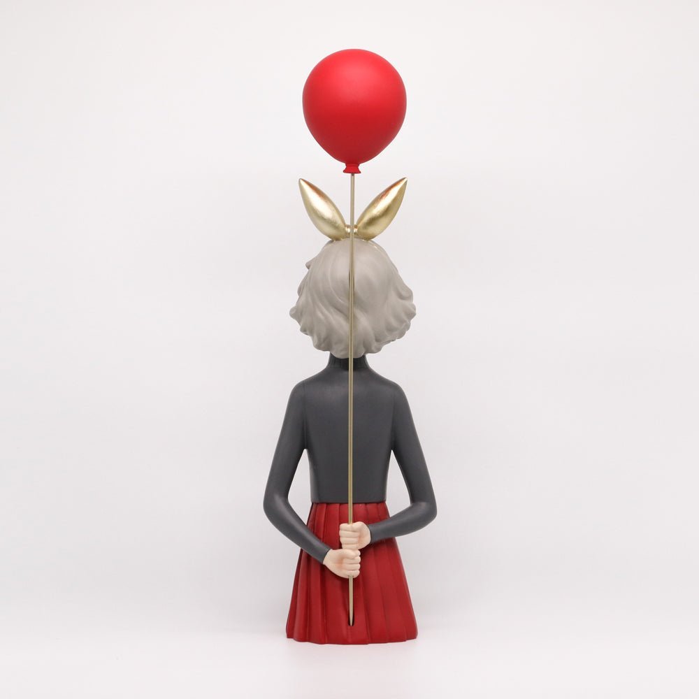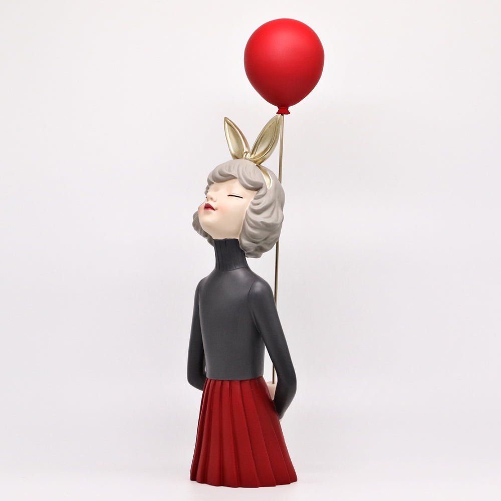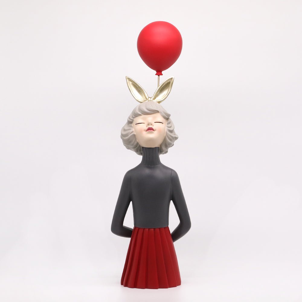 รูปปั้นเรซิ่นรูปผู้หญิงครึ่งตัวถือลูกโป่งสีแดง สำหรับวางตกแต่งบ้านเพื่อความสวยงาม