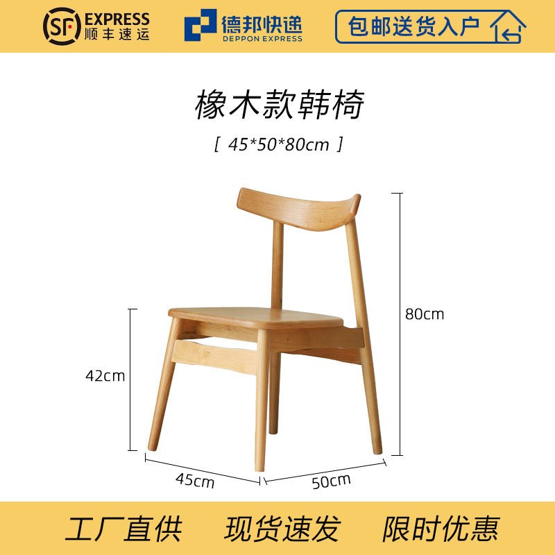 Nordic Dining Chair Solid Wood Chair Cherrywood Log Oak Minimalist Japanese Style Restaurant and Cafe Household Armchair